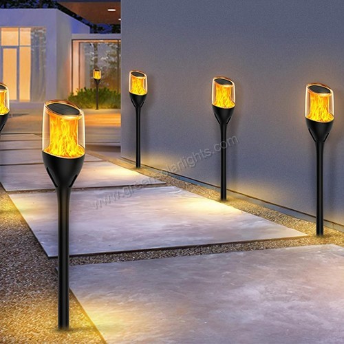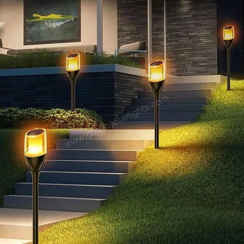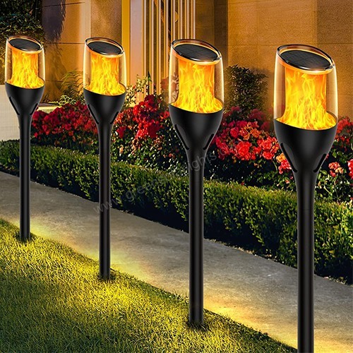 Equipped with high-quality LED beads, these solar torches simulate the appearance of a real flame, casting a bright and warm glow that enhances the atmosphere of any outdoor space—perfect for gardens, patios, pathways, and parties.