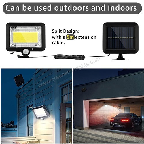 The solar panel is detachable from the light body with a 5-meter connecting cable, allowing flexible installation between floors, corridors, basements, or areas with limited direct sunlight.