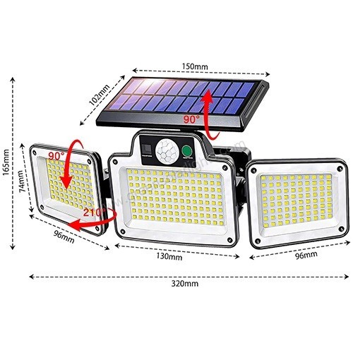 Features an innovative 3-head adjustable design—each light head, visor, and PIR motion sensor can be angled independently to customize lighting up to 270°. The intelligent infrared sensor detects movement within 3-5 meters, automatically activating the light for enhanced security.