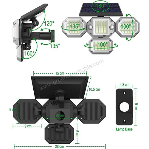 The wall-mountable bracket allows for tool-free installation, and both the solar panel and light heads are fully adjustable for optimal positioning.
