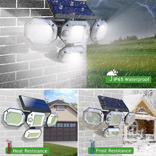 Features an innovative 3-head adjustable design—each light head, visor, and PIR motion sensor can be angled independently to customize lighting up to 270°. The intelligent infrared sensor detects movement within 3-5 meters, automatically activating the light for enhanced security.