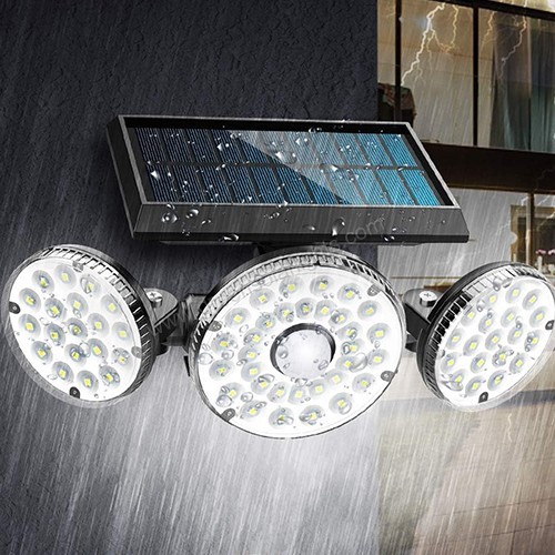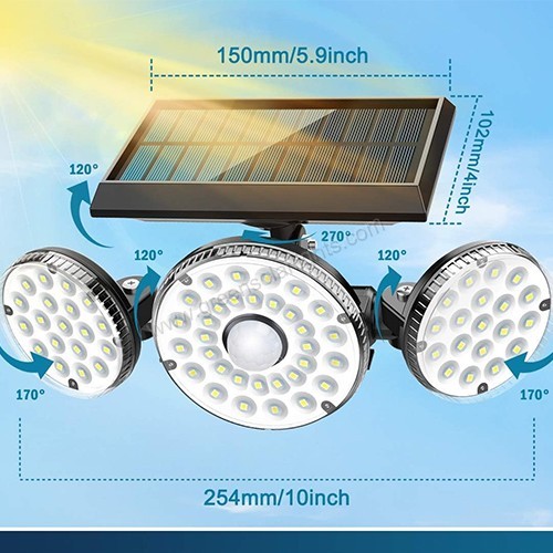 70 COB + 360° Adjustable: High-brightness white LEDs. Solar panel and light heads rotate independently for flexible, wide-angle coverage.