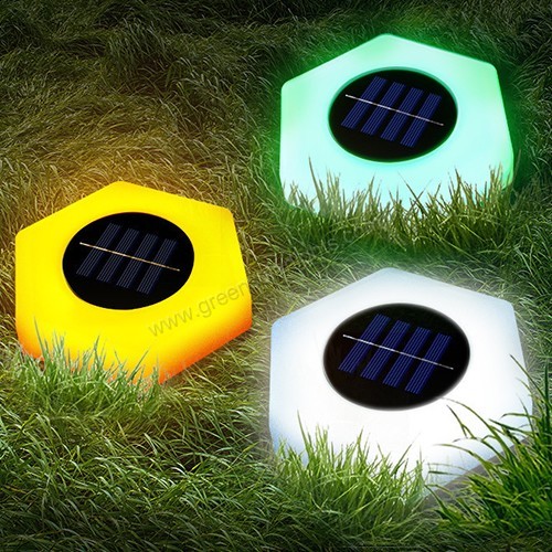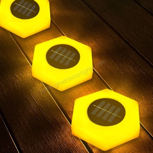 Featuring a unique hexagonal shape, this solar light adds a touch of modern elegance to any outdoor space. Its contemporary design blends seamlessly with various landscapes, serving as both a functional light source and a decorative visual accent.