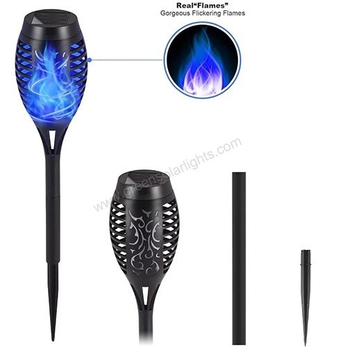 No cables or tools required. Simply place the solar torch lights wherever you like and instantly enjoy a beautiful flame effect.