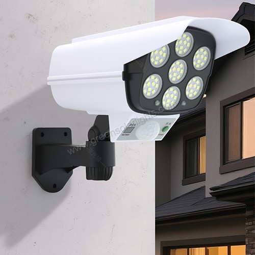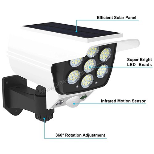 3-in-1 Lighting Modes – Motion-activated, dim-light, or always-on low light – Protect your home and deter intruders with this dual-purpose solar light. Equipped with 77 high-brightness LEDs and motion detection, plus a realistic dummy security camera for added peace of mind.