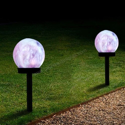Solar-Powered Spherical Garden Stake Light – Marble Texture, Ambient Glow