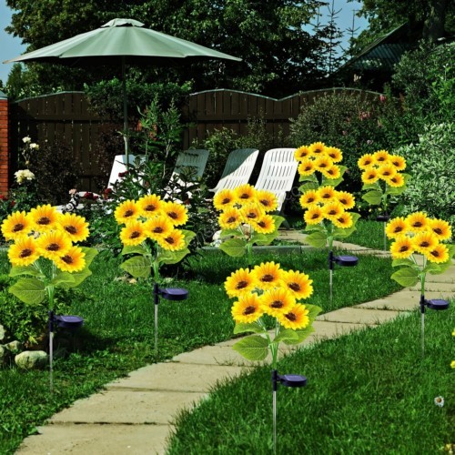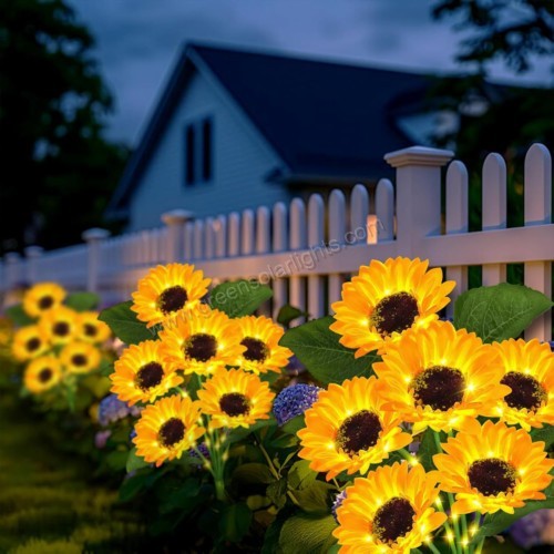 These gorgeous sunflowers add shine and elegance to your outdoor space, transforming your garden into an enchanting oasis with timeless charm. By day, the lifelike silk flowers with delicate leaves sway gently in the breeze, seamlessly blending with natural plants to create a vibrant garden aesthetic.