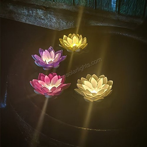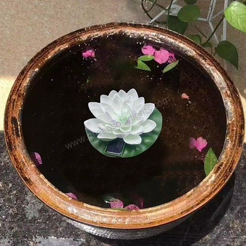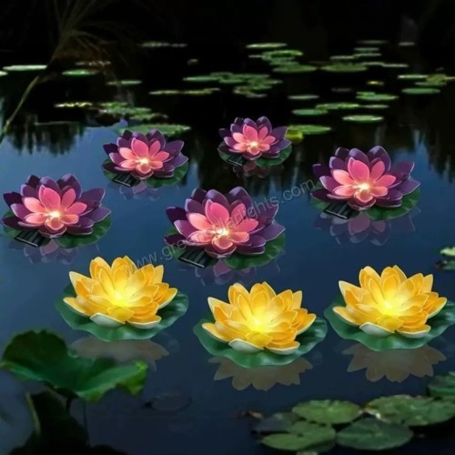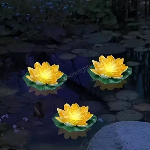 This floating solar light features a beautiful water lily design that gracefully decorates your pond or swimming pool. By day, it adds a touch of natural elegance to your water feature; by night, it illuminates with a warm, inviting glow.