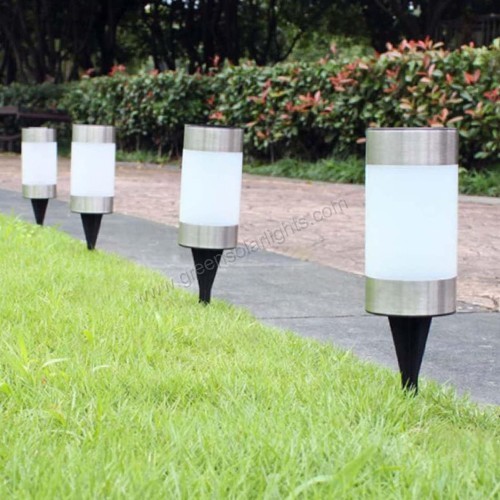 Powered by solar energy, it absorbs sunlight during the day to charge and automatically lights up at night. After 6 to 8 hours of sunlight exposure, the LED lights can provide 8 to 10 hours of illumination—energy-saving and environmentally friendly. Made of high-quality stainless steel, it is durable and resistant to rain and snow, ensuring reliable performance in all weather conditions. Open the switch under the lid, loosen the soil, and insert the stake into the ground. After installation, set the switch to the "ON" position to allow the battery to fully charge. On cloudy days, charging time should be extended. The light emits eye-friendly white illumination that blends seamlessly into its surroundings, such as backyards, gardens, driveways, pathways, courtyards, lawns, walkways, and pools—perfect for decorating your outdoor space.