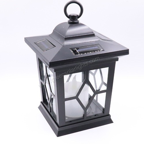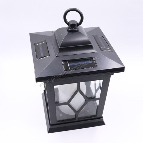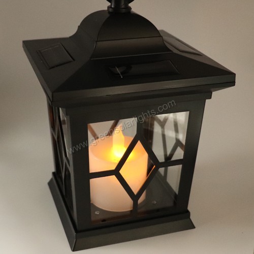 Hanging LED Flickering Candle Lantern, emitting a warm yellow flickering flame glow, making it perfect for gardens, patios, or other outdoor spaces in need of a soft light source. Powered by solar energy, it is especially energy-efficient and operates independently from electrical outlets.