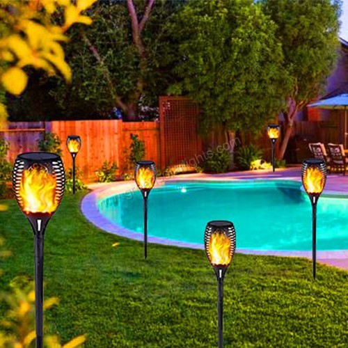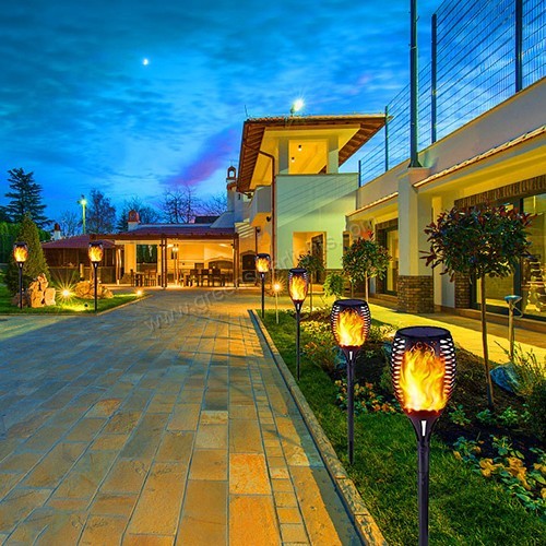 No wiring required—simply insert the torch into the ground and place it in direct sunlight for charging. Perfect for lawns, gardens, patios, balconies, porches, driveways, pathways, flower beds, and beaches.