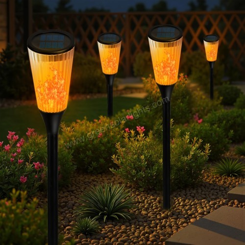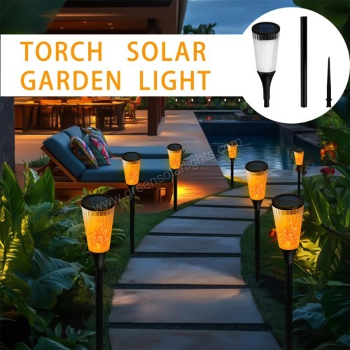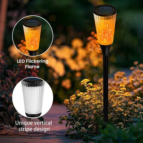Equipped with an upgraded polycrystalline solar panel and rechargeable battery, these torches charge automatically during the day and light up at dusk. After 6-8 hours of charging, enjoy 6-8 hours of enchanting illumination—completely wire-free and energy-efficient.