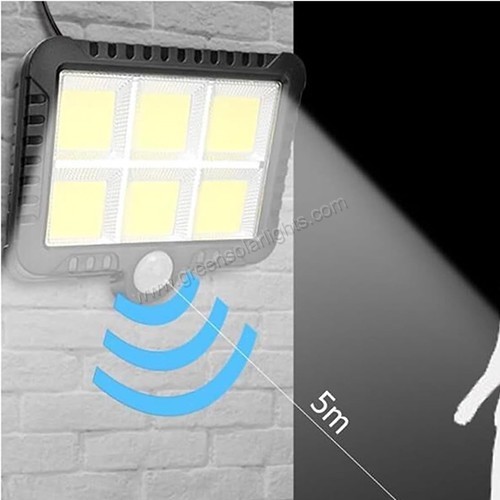 Charges during the day and activates automatically at night. The light turns on at 100% brightness when motion is detected (3-6m range, 120° angle) and turns off shortly after departure—efficient and hassle-free.