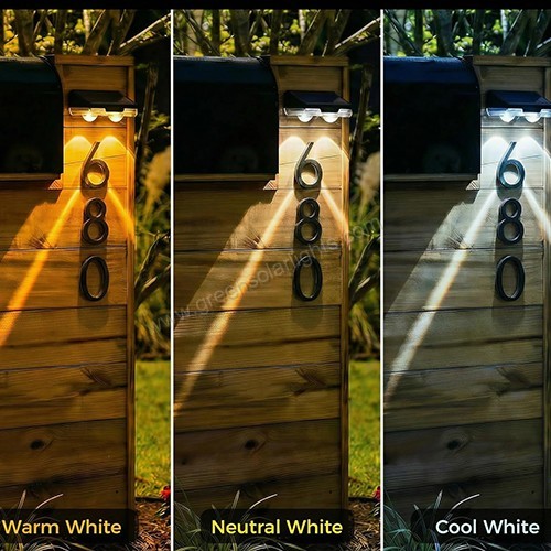High-efficiency solar panels absorb sunlight for extended charging, automatically turning on at dusk and off at dawn. With IP65 waterproof protection, it withstands rain, snow, and harsh outdoor conditions, ensuring durability and worry-free weather resistance. Bright LED lighting offers three color options—warm white, cool white, and neutral white—enhancing your home's curb appeal. Easily install it on mailboxes, walls, fences, decks, patios, and more. Perfect for mailboxes, address plaques, porches, patios, pathways, and outdoor décor—providing solar-powered illumination for all your outdoor spaces.